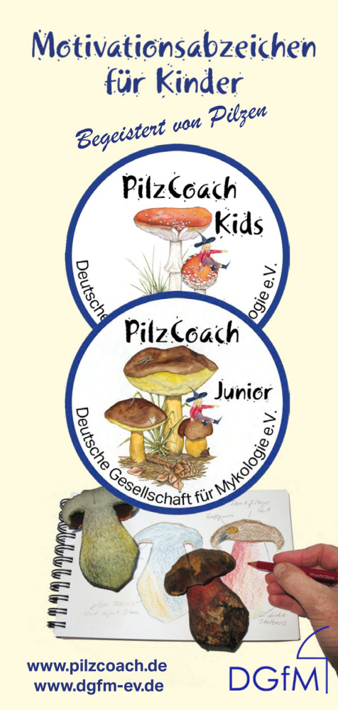 Sandra Noßmann, Melanie Korte und Gudrun Hieber (Spiele) haben im Rahmen ihrer PilzCoach-Ausbildung ein Motivationsabzeichen für Kinder und Jugendliche entwickelt. Der Fachausschuss Nachwuchsarbeit und die PilzCoach Ausbilder haben die Idee begeistert aufgegriffen. So starteten im Herbst 2022 die ersten Ausbildungskurse für die neue junge Zielgruppe. Seit dem haben schon viele Kinder das Motivations-abzeichen erworben und einen Einstieg in die faszinierende Welt der Pilze gefunden.