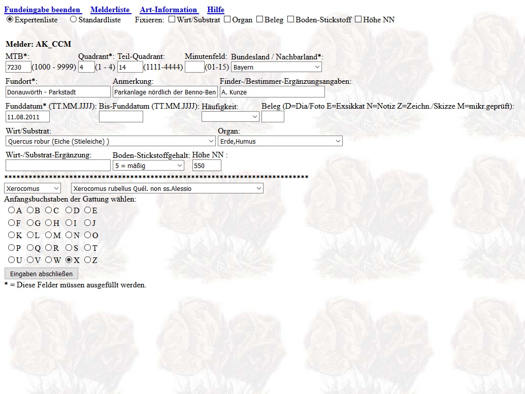 Als neues Kartierungswerkzeug wird derzeit das quelloffene Programm Indicia (www.indicia.org.uk) für die Pilze sukzessive bis zur Nutzungsreife entwickelt.
