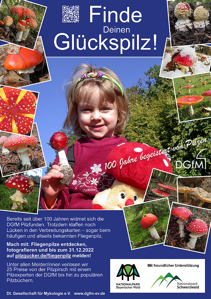 Bereits im Vorjahr haben die Deutsche Gesellschaft für Mykologie und naturgucker.de unter dem Motto „Finde deinen Glückspilz!“ Naturbegeisterte dazu aufgerufen, Funde von Fliegenpilzen zu melden. Nachdem die deutschlandweite Aktion viel Zuspruch erfahren hat und der Fliegenpilz zum Pilz des Jahres 2022 gewählt wurde, gibt es dieses Jahr eine Fortsetzung.