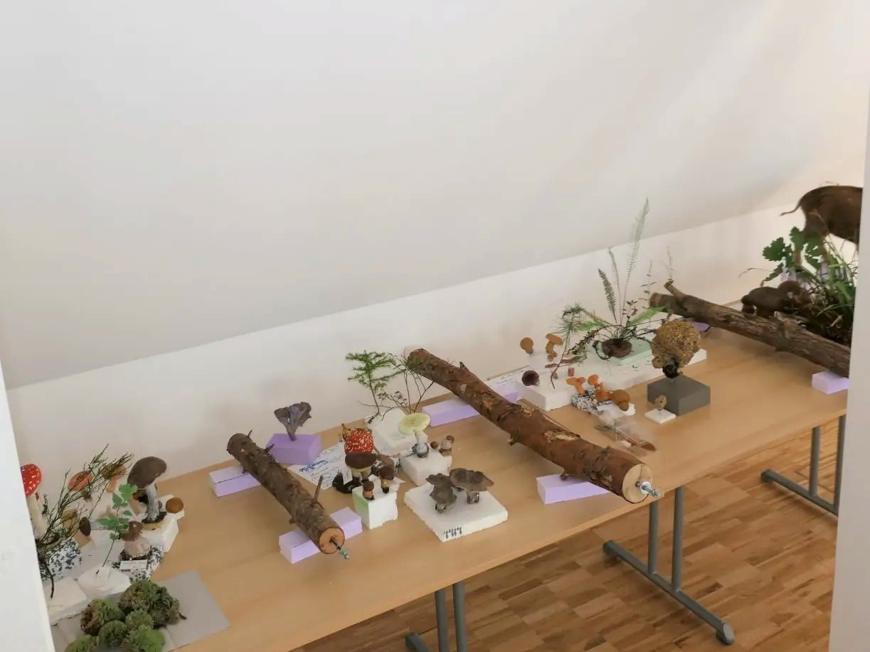 Bereichert wird die Ausstellung durch Installationen des Künstlers F. Eicher aus Bad Dürkheim. Er hat eigens für die Ausstellung Kunstobjekte kreiert, die die wissenschaftlichen und spannenden Fakten rund um das Thema Mykorrhiza auf ästhetische und künstlerische Weise beleuchten.
