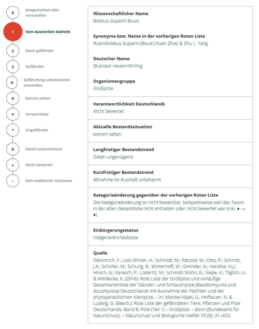 Bereits im Dezember 2019 hat das Rote-Liste-Zentrum (RLZ) in Bonn eine Artensuchmaschine in Betrieb genommen. Damit macht sie den Gefährdungsstatus von rund 30.000 untersuchten Tieren, Pflanzen und Pilzen Deutschlands kostenlos recherchierbar.