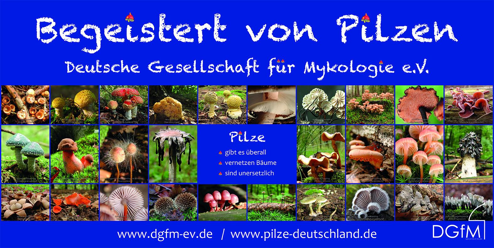 Beim letzten Treffen des Fachausschusses Nachwuchs im Kräuterdorf Nagel haben die Mitglieder unseres FA auf dem Kräuterfest eine Pilzausstellung für die DGfM organisiert. Dabei ist die Idee für ein Banner enstanden, damit bei Veranstaltungen schon von weitem zu sehen ist: Hier geht es um Pilze.