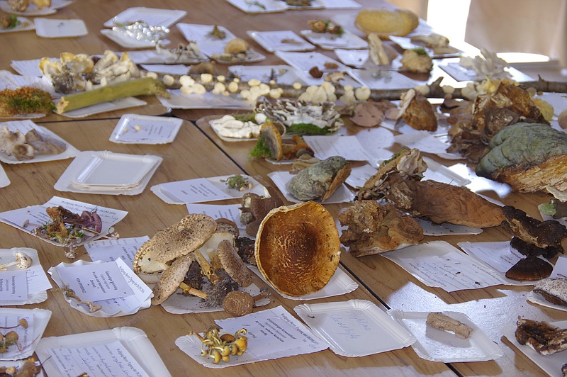 Vormittags gab es jeweils eine Auswahl verschiedener Exkursionsziele, die teils direkt zu Fuß, teils mit dem Bus erreicht wurden. In diese bunte Vielfalt von Exkursionsgebieten reihten sich u. a. der Bernrieder und der Höhenrieder Park mit ihren zahlreichen Methusalembäumen, der Eibenwald bei Paterzell (Deutschlands größter Bestand mit über 2000 Eibenbäumen!) sowie die berühmte „Goaslweide“ ein. An jedem der Exkursionspunkte gab es zahlreiche Funde. Eine gelungene Ergänzung zur Untersuchung der Funde waren mehrere Workshops, die von Björn Wergen (Ascomyceten), Julia Kruse (Phytoparasiten), Georg Schabel (Fotografie), Dr. Rita Lüder (PilzCoach), Dr. Ditte Bandini (Risspilze) und Veronika Wähnert & Bettina Haberl (PSV-Fortbildung) angeboten wurden. Alle Themen fanden sehr regen Zuspruch.